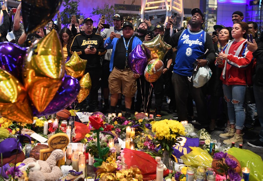 Bryant's death caused an outpouring of grief across Los Angeles, where he remained the city's most popular athlete into retirement. Dozens of public memorials and murals have been installed around the sprawling metropolis, and thousands of fans gathered daily outside Staples Center to commiserate after the crash.